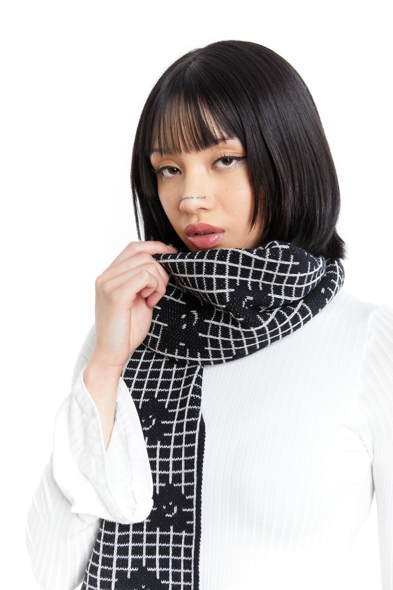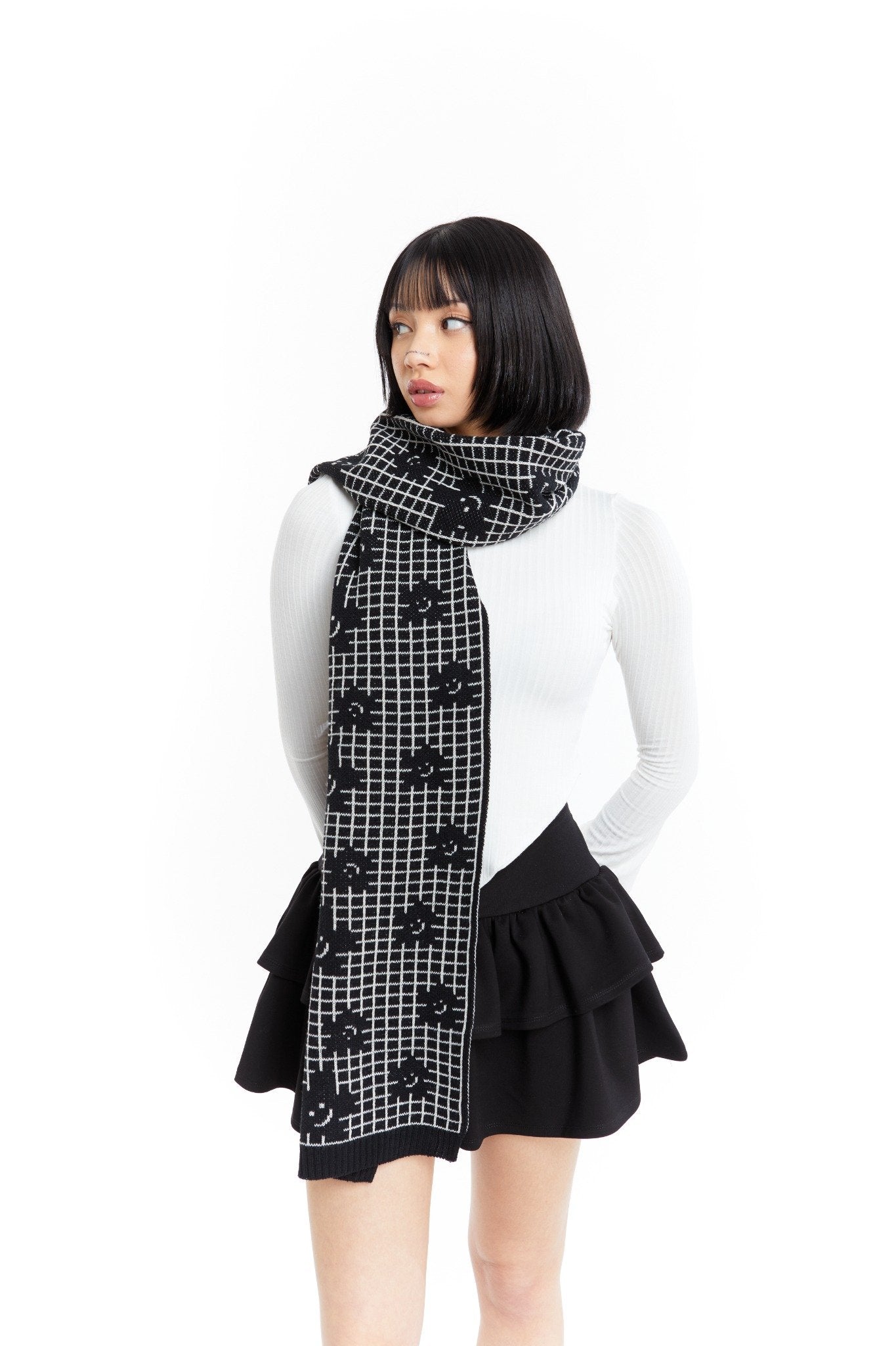 Atrevida y única, la bufanda B&N Flor combina la elegancia del blanco y negro con un diseño floral exclusivo que destaca tu estilo con personalidad. Perfecta para quienes buscan un toque audaz en su look diario, esta bufanda de autor realza cualquier outfit.