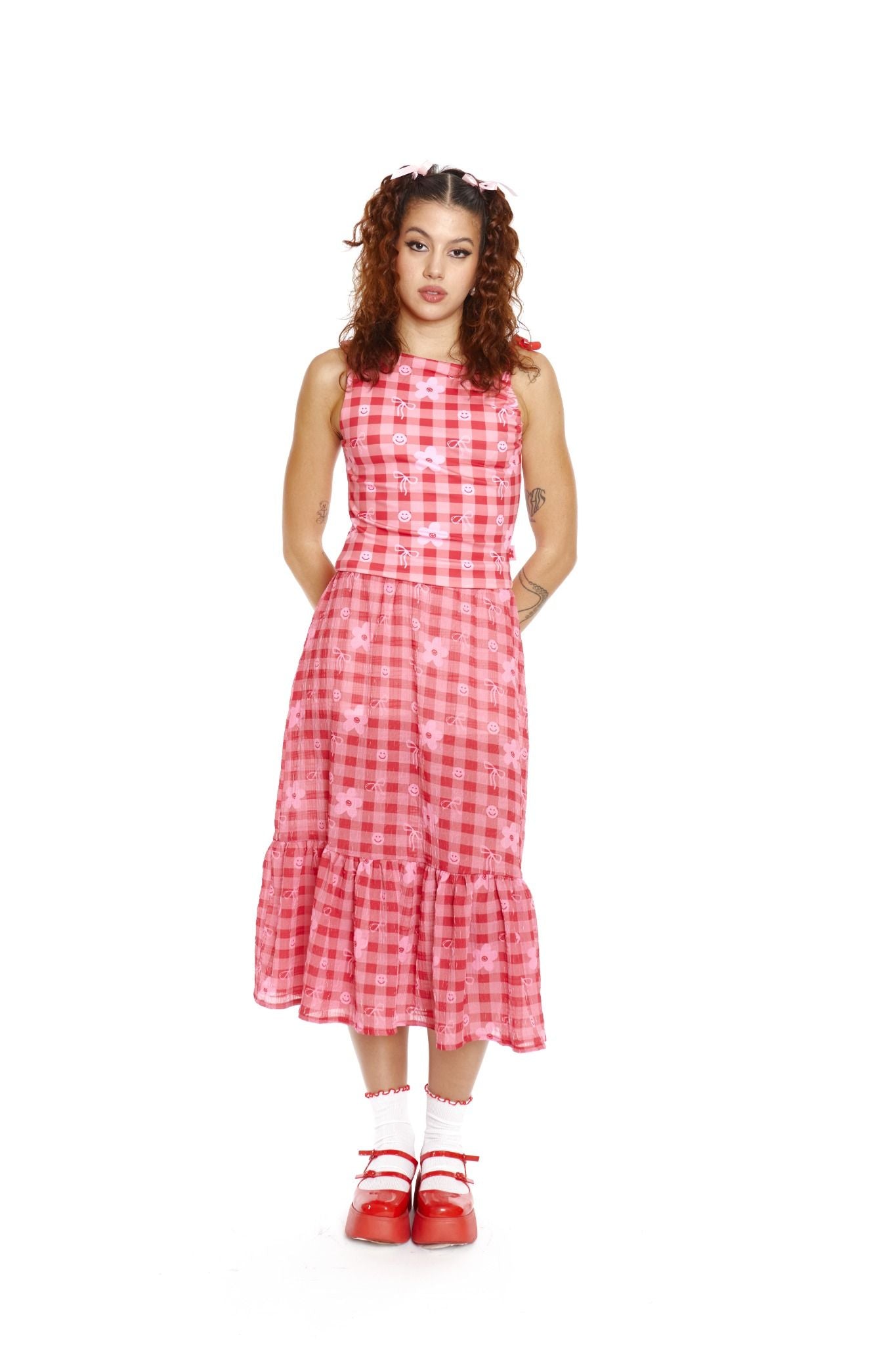 FALDA LARGA ROJA CINTA